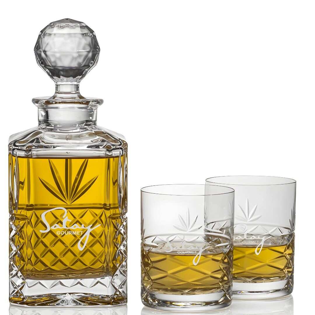 Personalized Crystal Whiskey Decanters and Glasses are custom engraved and deep etched...