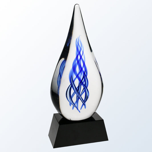 Personalized Art Glass Teardrop Award with Suspended Air Bubbles ~ Lila