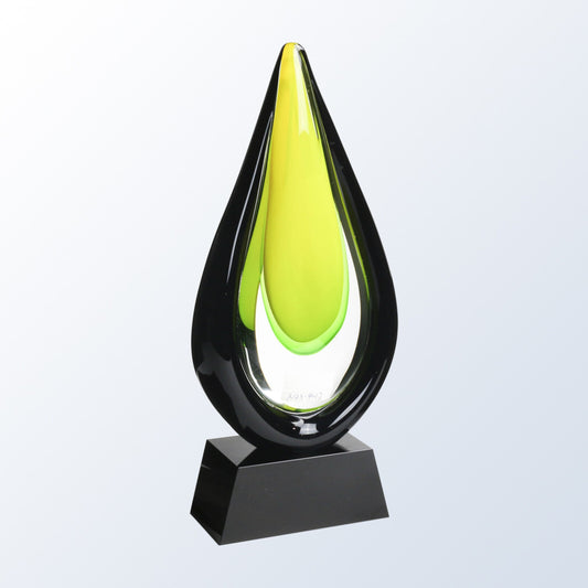 Engraved Black and Lime Green Flame Art Glass Award ~ Szafran