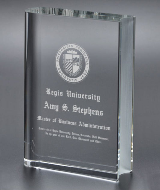 Engraved Crystal Book Award, Great Graduation Gifts ~ Collegiate