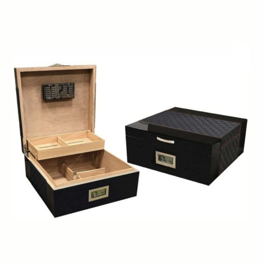 Personalized Black Lacquer Finish Humidor with Bonded Leather - Taina Black