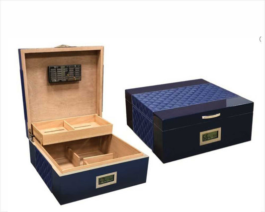 Personalized Humidor with Dark Royal Blue Finish ~ Taina Blue
