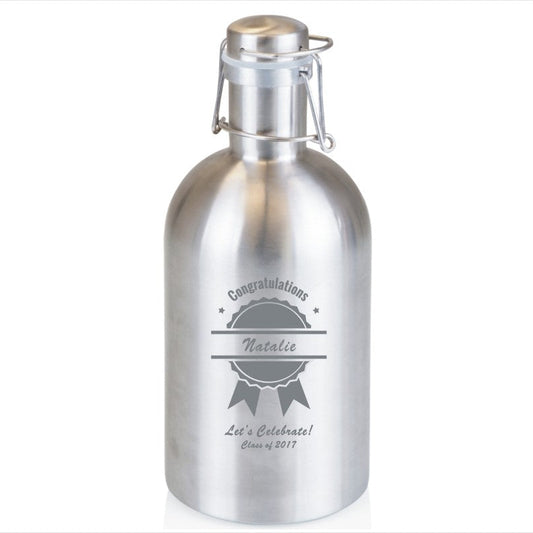 Botella para cerveza de acero inoxidable de 64 oz grabada