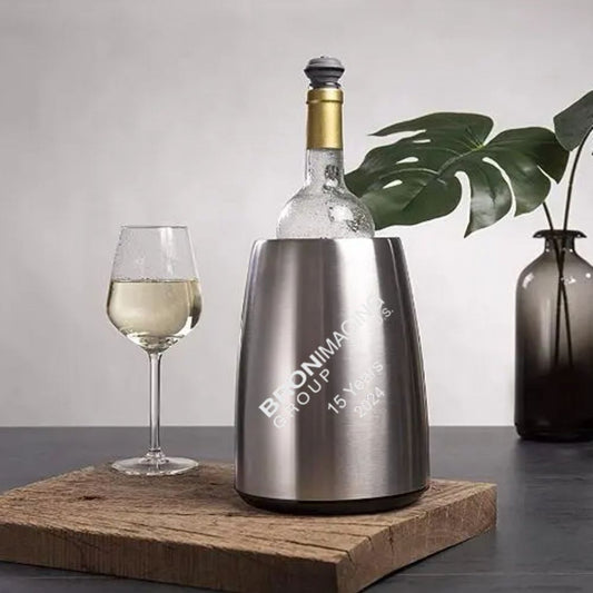 Enfriador de botellas de vino con cuenco de acero inoxidable grabado