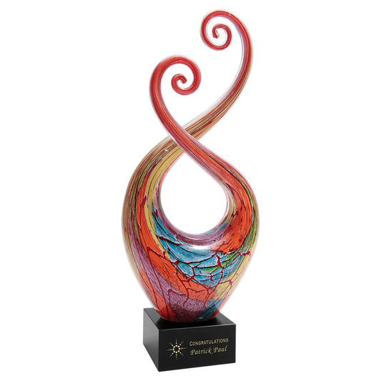 Trophée en verre artistique multicolore torsadé sur base noire