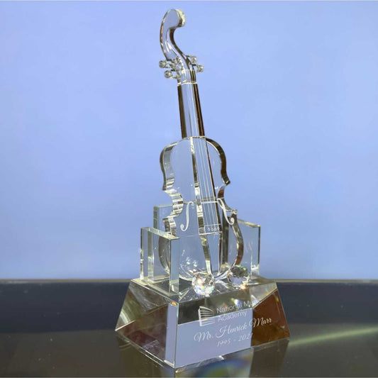 Trophée de violon ou de violoncelle en cristal sur une base en cristal massif ~ Performance de commandement