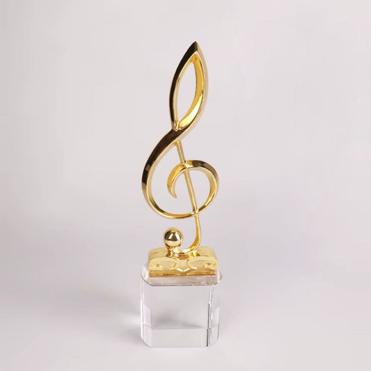Trophée de musique en verre sur base bleue gravée personnalisée ~ Clé de sol