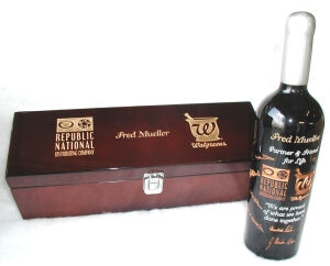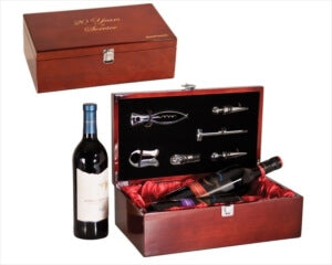 Coffret cadeau à vin en bois massif gravé à la main - Rouge