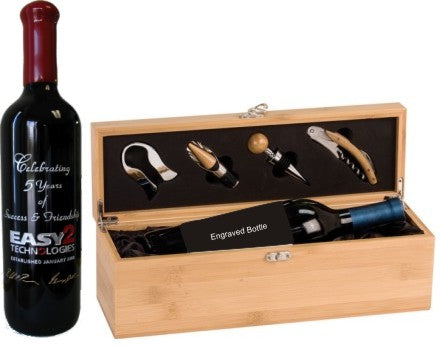 Coffret cadeau de vin en bambou gravé au laser avec bouteille de vin gravée