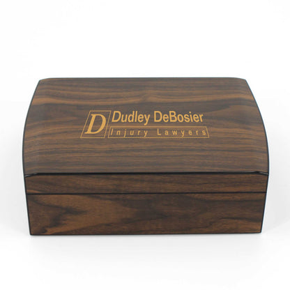 Le coffret cadeau 4 pièces avec cave à cigares en finition ébène cerisier laqué et plateau en verre peut être gravé sur mesure avec un message personnalisé et le logo de l'entreprise. Le cadeau parfait pour l'amateur de cigares sur votre liste de cadeaux. Il contient un cendrier à cigares assorti, un coupe-guillotine et un étui à cigares de voyage. Livré avec un plateau en verre trempé, un étui de voyage à cigares en similicuir, un cendrier à cigares en bois assorti, un coupe-lame double et un hygromètre numérique externe. Peut contenir environ 75 cigares.