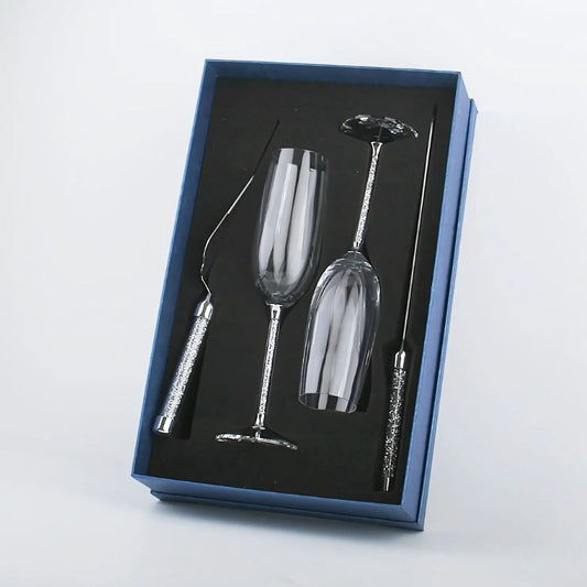 Shaker à martini en verre jazz gravable avec 2 verres à pied dans un coffret cadeau bleu