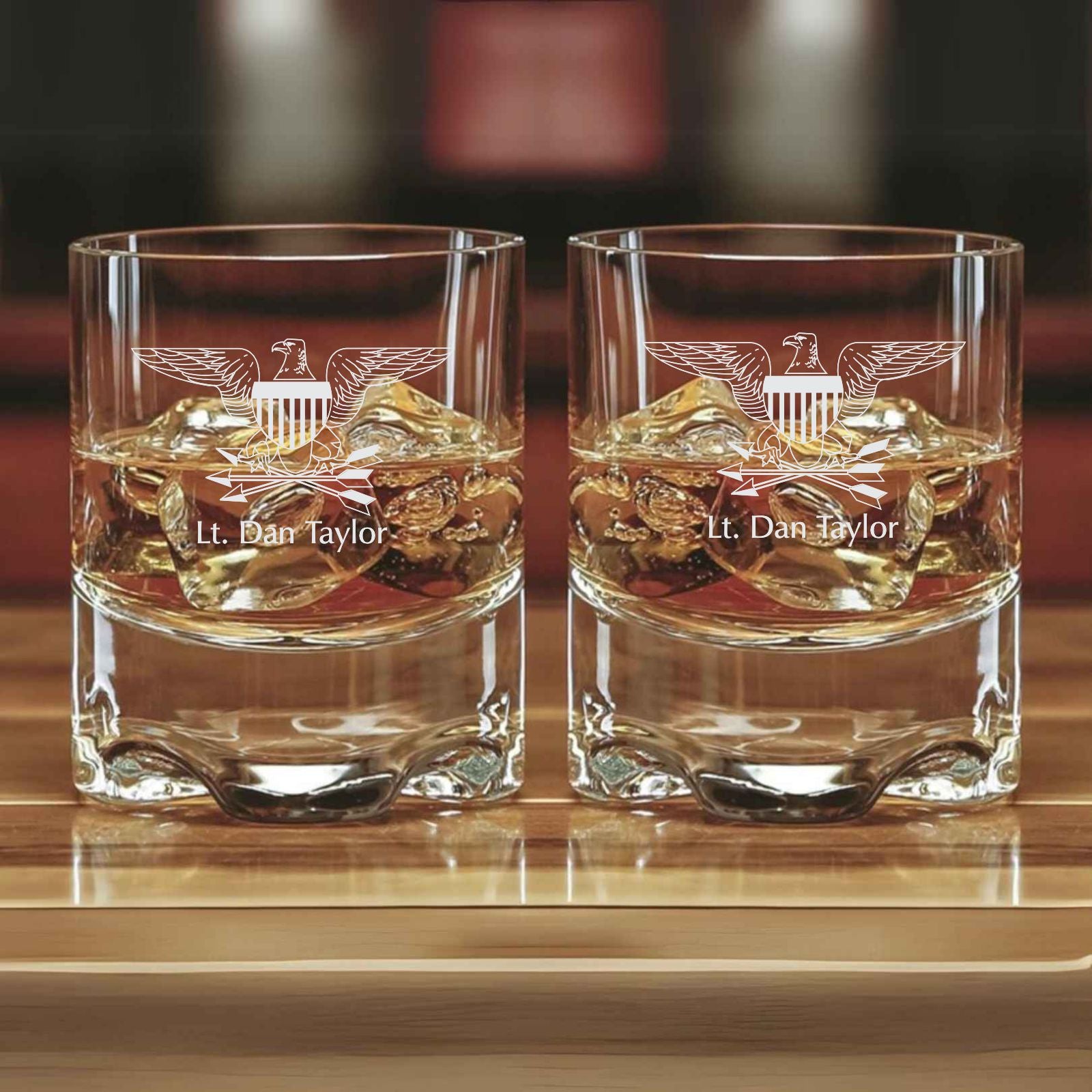 Transform your bar into a haven of sophistication with these substantial, exquisitely engraved double old fashion crystal glasses. Their heavy, molded bottoms not only provide reassuring stability but also exude an air of distinction that sets them apart. Picture your company logo, a striking insignia, or a personalized monogram deeply engraved into these gleaming glasses, making a bold statement at every gathering. These 10oz, non-lead crystal masterpieces are the perfect way to impress clients, commemorate special occasions, or simply add a touch of class to your home bar.